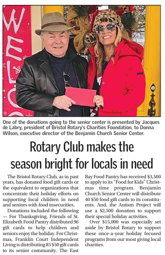 Bristol Rotary has started the ball rolling with a donation of 10% of the total needed and encourages other supporters of this fine program to chip in also. To donate or ask questions contact: Jaime Poirier, School Counselor, 401-524-0469, poirierj@barringtonschools.org.