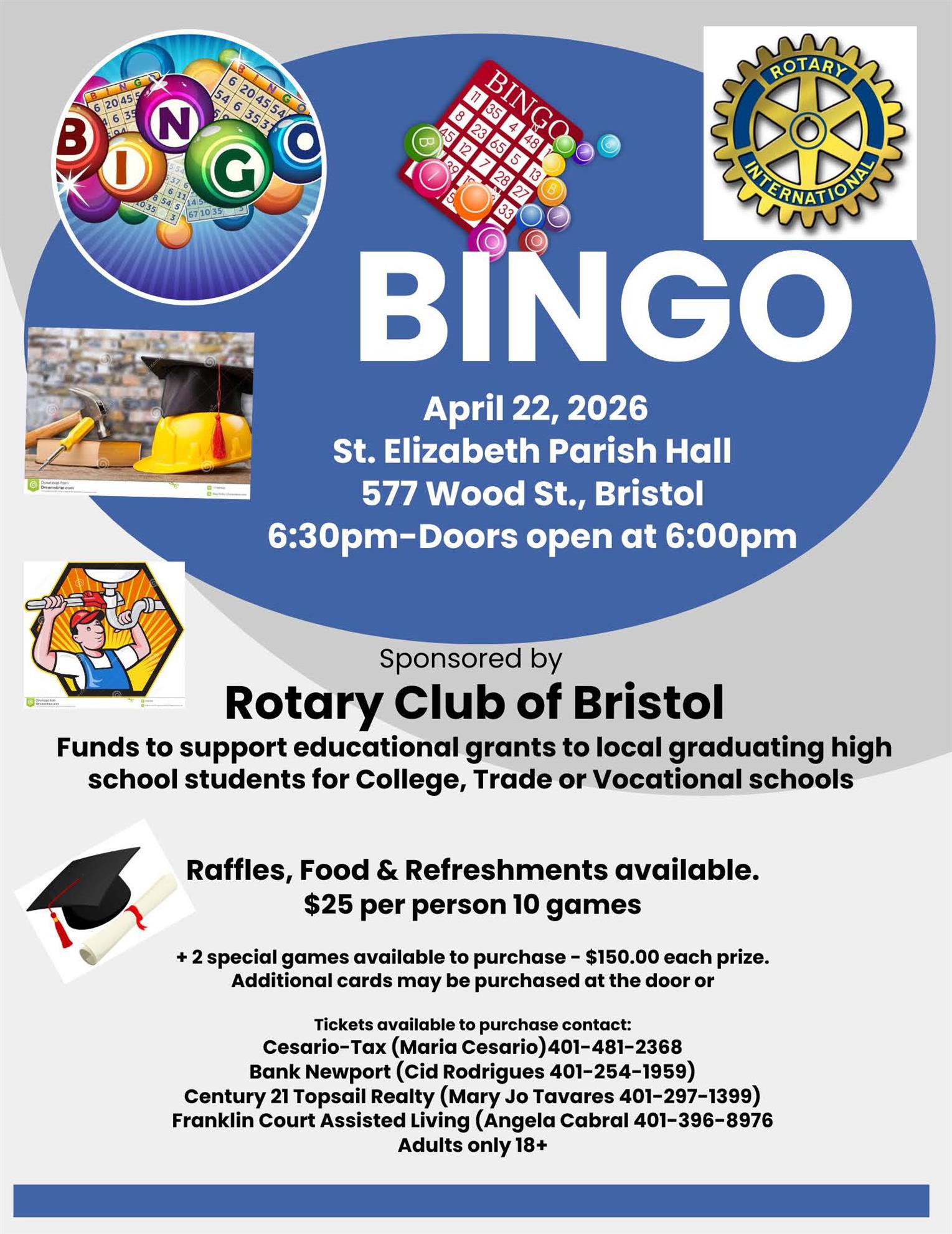 In the Spring, funds were raised to provide over $16,000 in financial support for students graduating from high school and for the Bristol Rotary Scholarship Fund at Roger Williams University. Coincidently, 2025 is the 40th year anniversary of the Fund at Roger Williams.