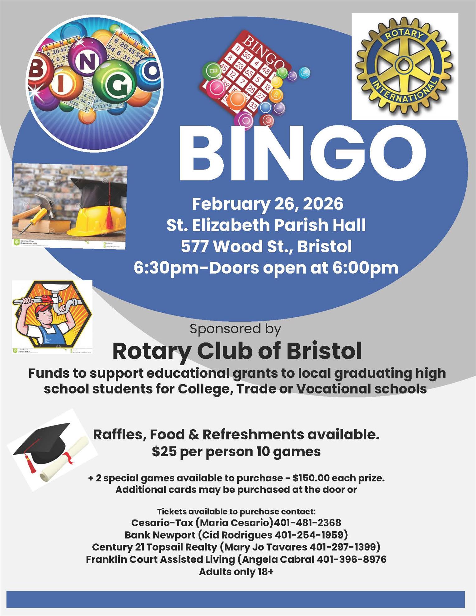 To Help us Help Others, please visit the Bristol Rotary website at “bristolrotaryclub.com.” An application to request a charitable donation from Bristol Rotary can also be found on the website.